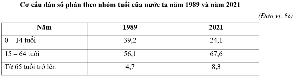 Dựa vào các từ khóa: cơ cấu dân số, năm 1989 và năm 2021. Từ đó, lựa chọn dạng biểu đồ thích hợp nhất.