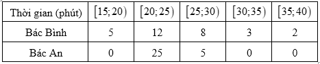 Khoảng tứ phân vị của mẫu số liệu ghép nhóm về thời gian tập thể dục buổi sáng mỗi ngày của bác Bình có giá trị gần nhất với giá trị nào dưới đây?