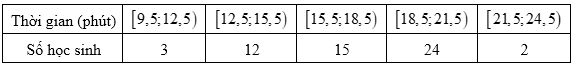 Thời gian truy cập Internet mỗi buổi tối của một số học sinh được cho trong bảng sau:Khoảng