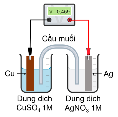 | d) Phản ứng hoá học xảy ra trong pin: Cu2+ + 2Ag → Cu + 2Ag+. |