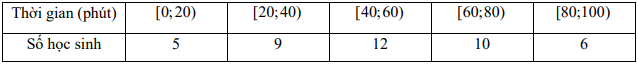 Khảo sát thời gian tập thể dục của một số học sinh khối 11 thu được mẫu số liệu ghép nhóm sau