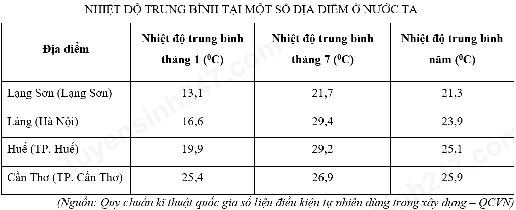 | a) Nhiệt độ trung bình năm nước ta tăng dần từ Bắc vào Nam. | ||