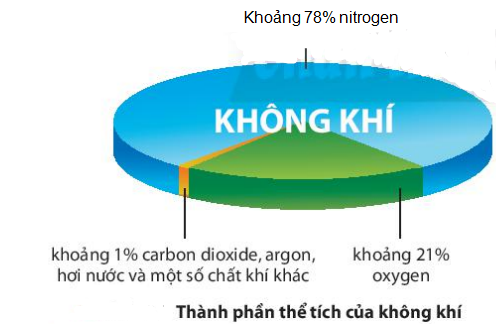 Quan sát hình bên dưới cho biết trong không khí, khí nào chiếm tỉ lệ thể tích lớn