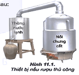 | b) Ethanol có nhiệt độ sôi thấp hơn nước sẽ bay hơi ra trước rồi được ngưng tụ và lấy ở bình hứng. | ||