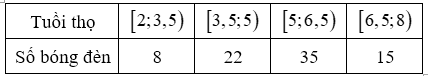 Cho mẫu số liệu ghép nhóm về tuổi thọ (đơn vị tính là năm) của một loại bóng đèn mới như sau: