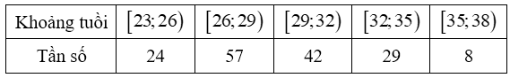Một công ty thống kê tuổi của các nhân viên ở bảng sau: