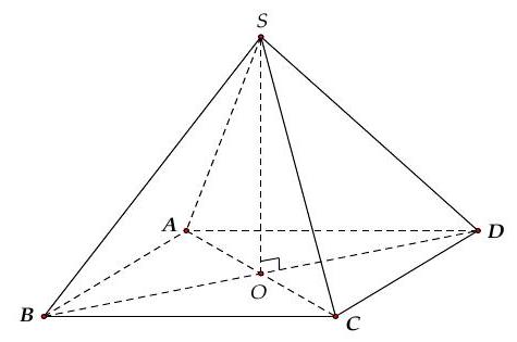 Cho hình chóp tứ giác đều $S.ABCD$, có $O$ tâm hình vuông $ABCD$.