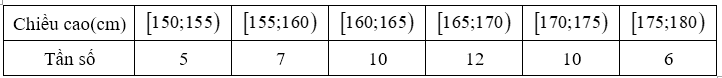Điều tra về chiều cao của một nhóm 50 em học sinh nam lớp 12 tại một trường trung học phổ thông được ghi lại trong bảng sau: