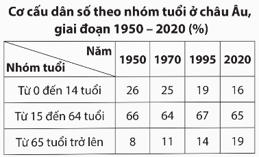 | a) Năm 2020, châu Âu có cơ cấu dân số già. | ||