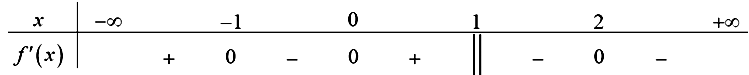 Hàm số đạt cực đại tại $x_{0}$ khi $f'(x)$ đổi dấu từ dương $( + )$ sang âm $( - )$ khi đi qua $x_{0}$.