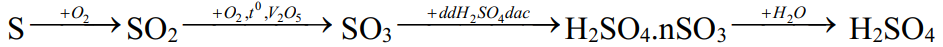Trong công nghiệp, người ta sản xuất sulfuric acid (H2SO4) từ sulfur (S) theo sơ đồ chuyển hóa