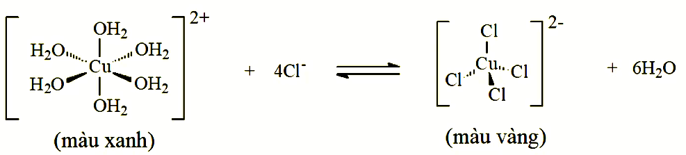 Trong dung dịch muối CuCl2 loãng tồn tại cân bằng giữa hai phức sau: