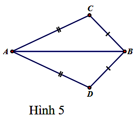 Cho hình vẽ (Hình 5), biết $\text{AC} = \text{AD},\text{BC} = \text{BD}$