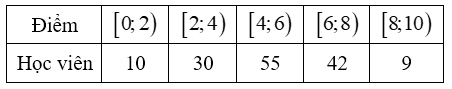Trung tâm ngoại ngữ thống kê bảng điểm môn Tiếng Anh của một khóa học trong bảng sau: