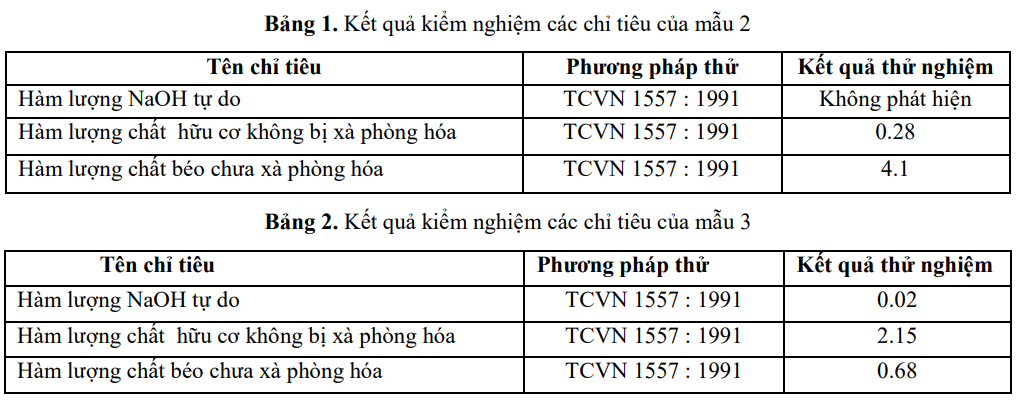 Trong 3 chỉ tiêu đánh giá xà phòng được đưa ra ở bảng 1 và bảng 2. Chỉ tiêu nào phản ánh được hiệu suất của phản ứng xà phòng hoá đã xảy ra?