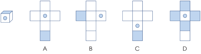 Quan sát mặt có dấu chấm rồi lựa chọn hình khai triển có vị trí tương ứng.