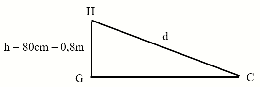| c) Điểm G trên mặt sân thỏa mãn GB = 4,5 m. Người chơi 1 thực hiện giao bóng, bóng rời mặt vợt tại vị trí ngay thẳng phía trên đầu điểm G và ở độ cao 80 cm so với G, sau đó bóng chạm trúng điểm C. Gọi d là độ dịch chuyển của bóng tính từ lúc bắt đầu rời vợt đến khi bóng chạm điểm C (d tính bằng mét). Giá trị làm tròn của d đến chữ số hàng phần trăm là 14,15 m. | ||