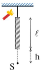 Một cái thước có chiều dài l = 75 cm được treo cân bằng bởi một sợi dây như hình vẽ bên. Tại điểm S cách mép dưới của thước một khoảng h, bố trí một cổng quang điện nối với đồng hồ đo thời gian hiện số. Đặt đồng hồ ở chế độ đo thời gian vật chắn cổng quang điện. Đốt dây để thước rơi qua khe của cổng quang điện. Kết quả cho thấy đồng hồ hiện 0,2 s. Bỏ qua lực cản của không khí, lấy gia tốc rơi tự do là 10 m/s2. Giá trị của h bằng bao nhiêu mét? (làm tròn kết quả đến chữ số hàng phần trăm)