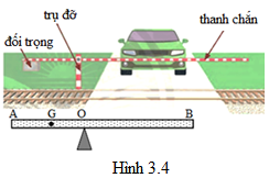 Một thanh chắn đường, dài 7,8 m trọng lượng 2100 N và trọng tâm G cách đầu bên trái A 1,2 m. Thanh có thể quay quanh một trục nằm ngang O ở cách đầu bên trái 1,5 m (Hình 3.4). Để thanh AB cân bằng thì tác dụng đầu B một lực bằng bao nhiêu.