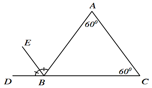 | a) $\angle DBA$ là góc ngoài tại đỉnh $B$ của tam giác $ABC$. | ||