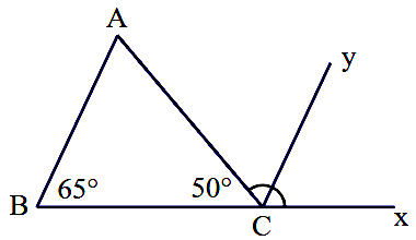 Cho hình vẽ. Biết $\angle B = 65^{0},\angle ACB = 50^{0}$, hai tia $Cx$ và $CB$ đối nhau, tia $Cy$ là tia