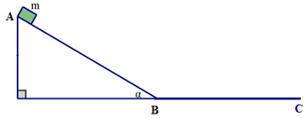 Một mặt phẳng nghiêng AB dàì 1,8m, nghiêng một góc $30^{0}$ so với phương ngang. Vật lăn từ