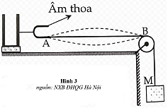 Bố trí hệ thống như Hình 3. Dây AB đàn hồi, dài 0,85m, đang có sóng dừng với tần số cơ bản
