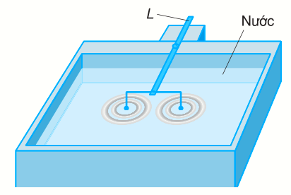Trong thí nghiệm về giao thoa sóng nước Hình 1, tính toán bước sóng $\lambda = 2cm$. Trên đường