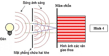 Thực hiện giao thoa với ánh sáng đơn sắc đỏ thu được kết quả như hình 4. Biết a = 1,5mm , D