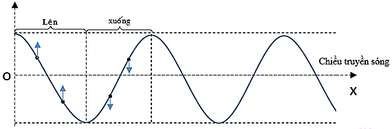 - Những điểm nằm bên trái đỉnh sóng sẽ đi xuống. Những điểm nằm bên phải đỉnh sóng sẽ đi lên.