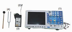 Hình bên là bộ thí nghiệm đo tần số sóng âm. Có bốn bộ phận chính.