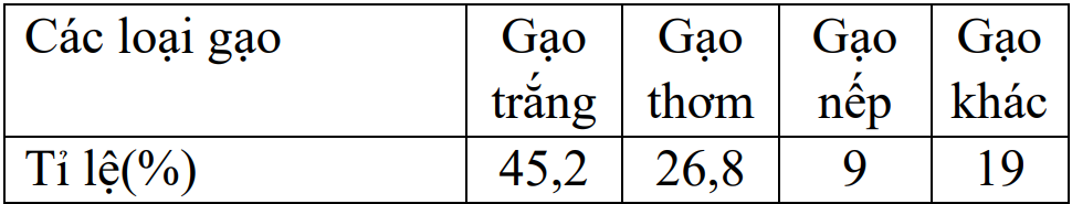 b) Biết rằng tổng lượng gạo xuất khẩu là 6,15 triệu tấn gạo. Hãy tính xem số lượng gạo thơm nước ta xuất khẩu trong năm 2020?