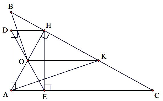 b) Chứng minh $O$ là trực tâm của $\Delta ABK$ suy ra $BO\bot AK$ (đpcm).