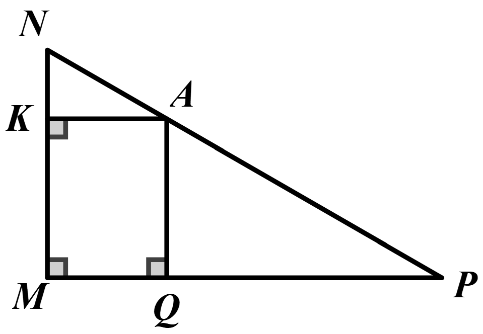 Cho tam giác MNP vuông tại M. Gọi A là một điểm nằm giữa N và P. Gọi $\text{K},\text{Q}$ lần lượt là chân các đường vuông góc hạ từ A xuống cạnh $\text{MN},\text{MP}$. Tứ giác MKAQ là hình gì?