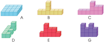 Các hình dưới đây được ghép từ các hình lập phương như nhau. Hỏi hình nào có thể tích lớn hơn thể tích hình C?
