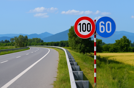 Trên đoạn đường có biển báo này, phương tiện tham gia giao thông được đi với tốc độ tối đa là bao nhiêu km/h, tối thiểu là bao nhiêu km/h?