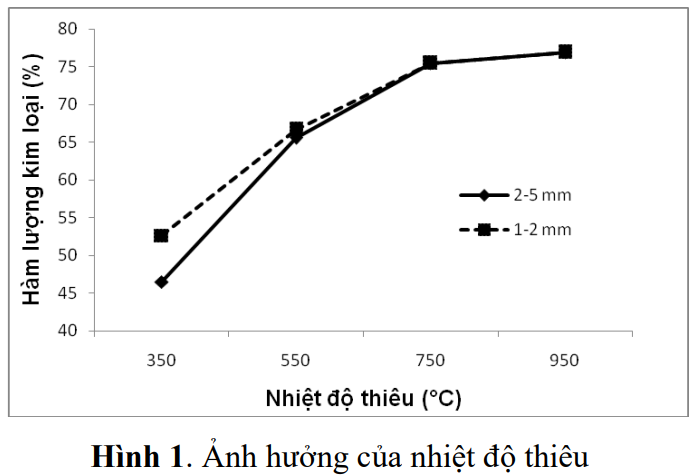 | c) Cỡ hạt 1–2 mm cho hiệu quả thu hồi kim loại tương đương với hạt 2–5 mm ở 750 °C. |