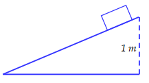 Một học sinh đang thực hiện thí nghiệm nhỏ với mặt phẳng nghiêng để kiểm chứng định luật bảo toàn cơ năng. Bạn học sinh ấy thả không vận tốc đầu một vật có dạng hình hộp nặng 1 kg từ đỉnh một mặt phẳng nghiêng xuống như hình vẽ và nhận thấy khi hộp chuyển động xuống dưới chân mặt phẳng nghiêng, vận tốc của hộp chỉ đạt 2 m/s, nhỏ hơn con số có được từ tính toán của bạn ấy. Lấy $g = 10m/s^{2}.$
