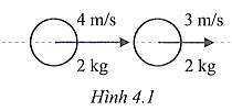 a) Hình 4.1 cho thấy hai quả cầu giống hệt nhau sắp xảy ra va chạm. Các quả cầu dính vào nhau