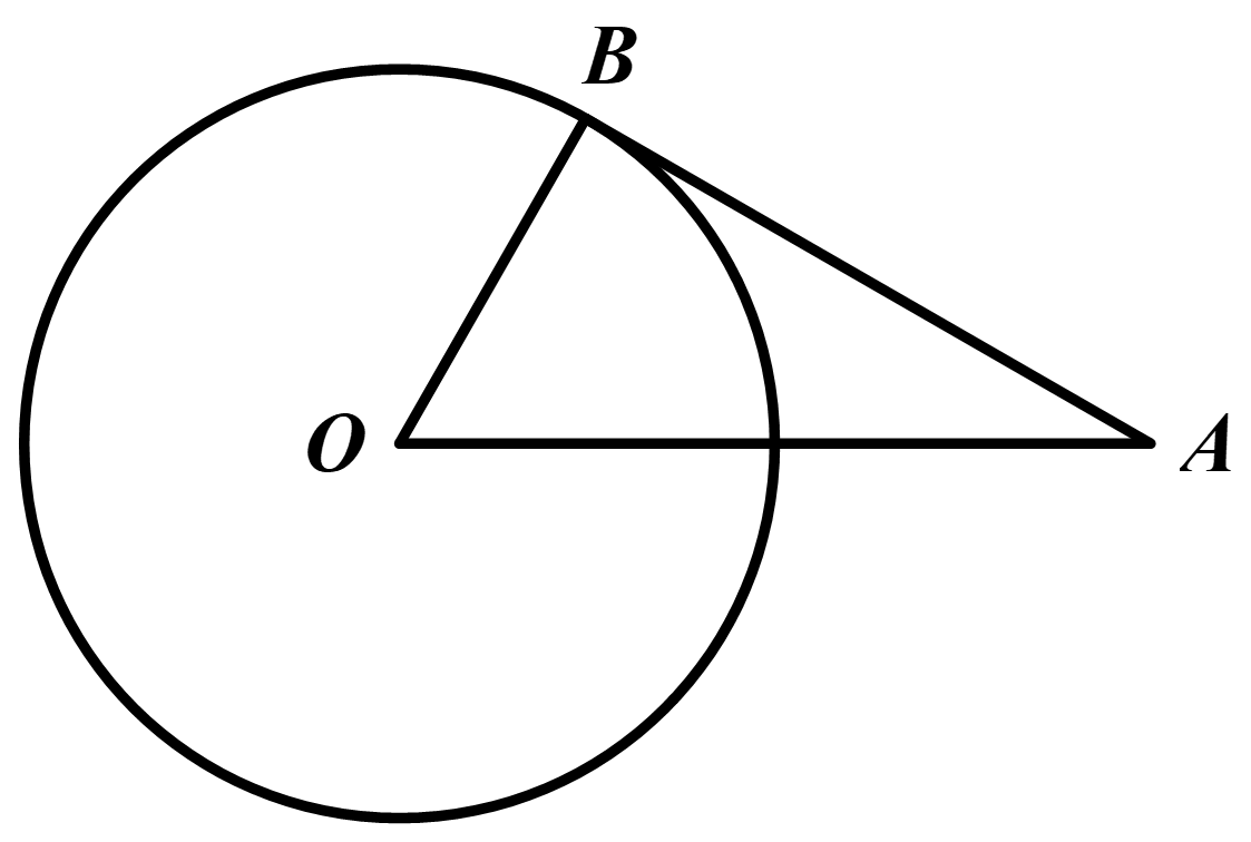 Từ điểm A nằm ngoài $\left( {O;3cm} \right)$ sao cho $OA = 6cm$. Kẻ tiếp tuyến AB của đường tròn
