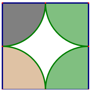 Diện tích của phần không được tô màu = Diện tích hình vuông – Diện tích của 4 hình quạt.