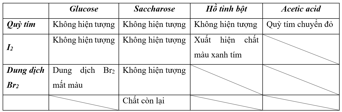 2.1 Tính chất hoá học glucose, saccharose, tinh bột, acetic acid.