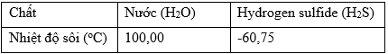 | a) Do có liên kết hydrogen giữa các phân tử nên nước có nhiệt độ sôi cao hơn hydrogen sulfide. | ||