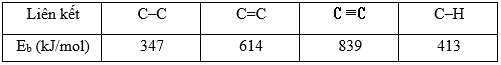 Cho bảng năng lượng liên kết của một số liên kết cộng hóa trị sau:
