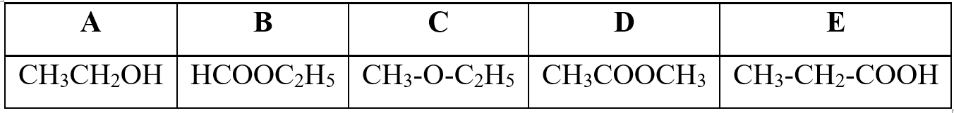 2. C2H6O, C3H8O và C3H6O2 là công thức phân tử của 5 hợp chất hữu cơ đơn chức, mạch hở A, B, C, D, E trong đó: