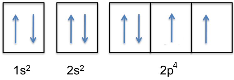 Ở trạng thái cơ bản, số electron đã ghép đôi và số electron độc thân trong nguyên tử oxygen
