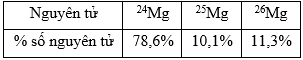 Cho các thông tin về nguyên tố magnesium (Mg) trong tự nhiên như sau: