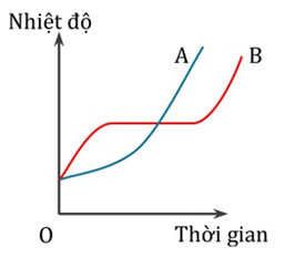 Hình bên là đồ thị biểu diễn sự thay đổi nhiệt độ theo thời gian trong quá trình chuyển từ thể rắn sang thể lỏng của chất rắn A và B.