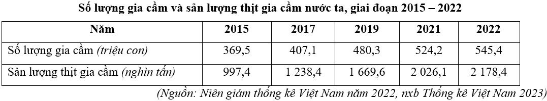 a) Dựa vào bảng số liệu và lấy sản lượng thịt gia cầm năm 2022 trừ sản lượng thịt gia cầm năm 2015.