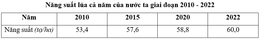 - Nhận xét: dựa vào bảng số liệu vừa tính, nhận xét về sự thay đổi năng suất lúa cả năm của nước ta giai đoạn 2010 - 2022.